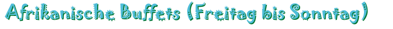 Auch wenn die Hauptspezialität des Hauses Ostafrikanische Speisen sind, gehören auch klassische Gerichte (wie z.B. Pasta) und andere afrikanische Gerichte zu unserem Speiseplan. Auf Wunsch stellen wir Ihnen auch ein besonderes Menü zusammen. Wir weisen auf unser vielfältiges Sonntagsbuffet hin.