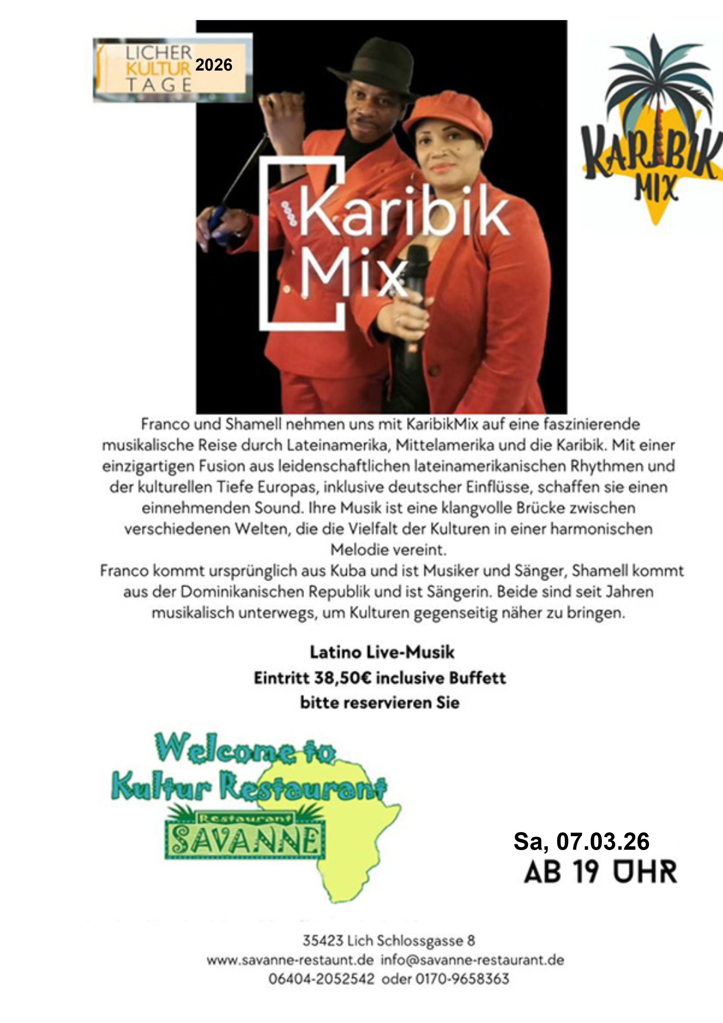 Sonntag, 11. Februar, Kultur Restaurant Savanne, Schloßgasse 8, 35423 Lich