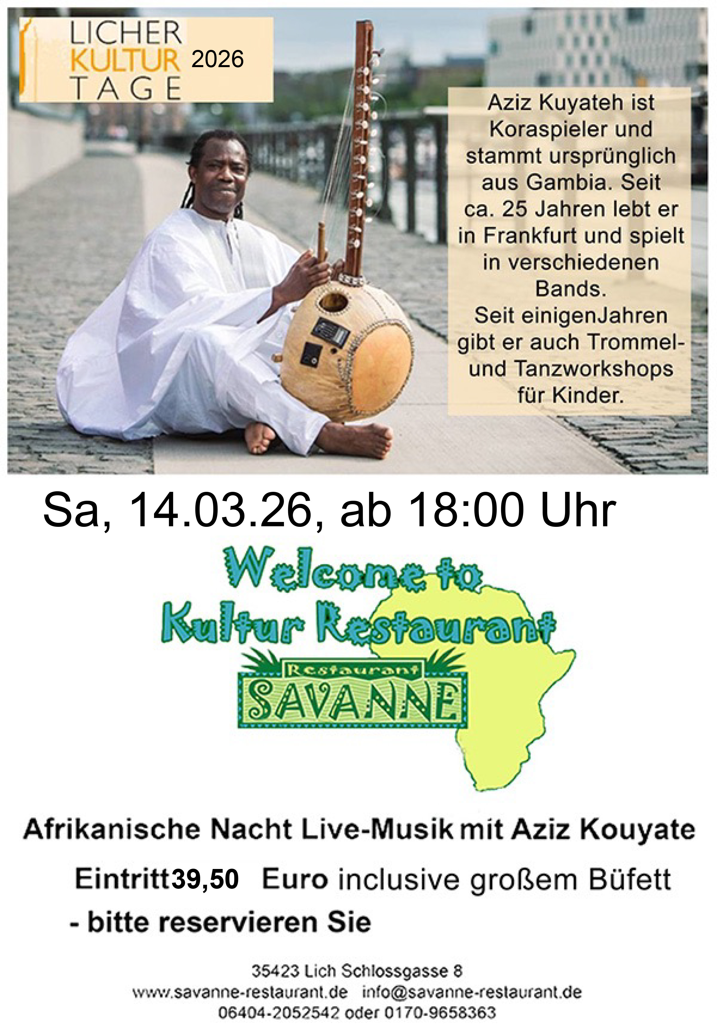 Sonntag, 11. Februar, Kultur Restaurant Savanne, Schloßgasse 8, 35423 Lich