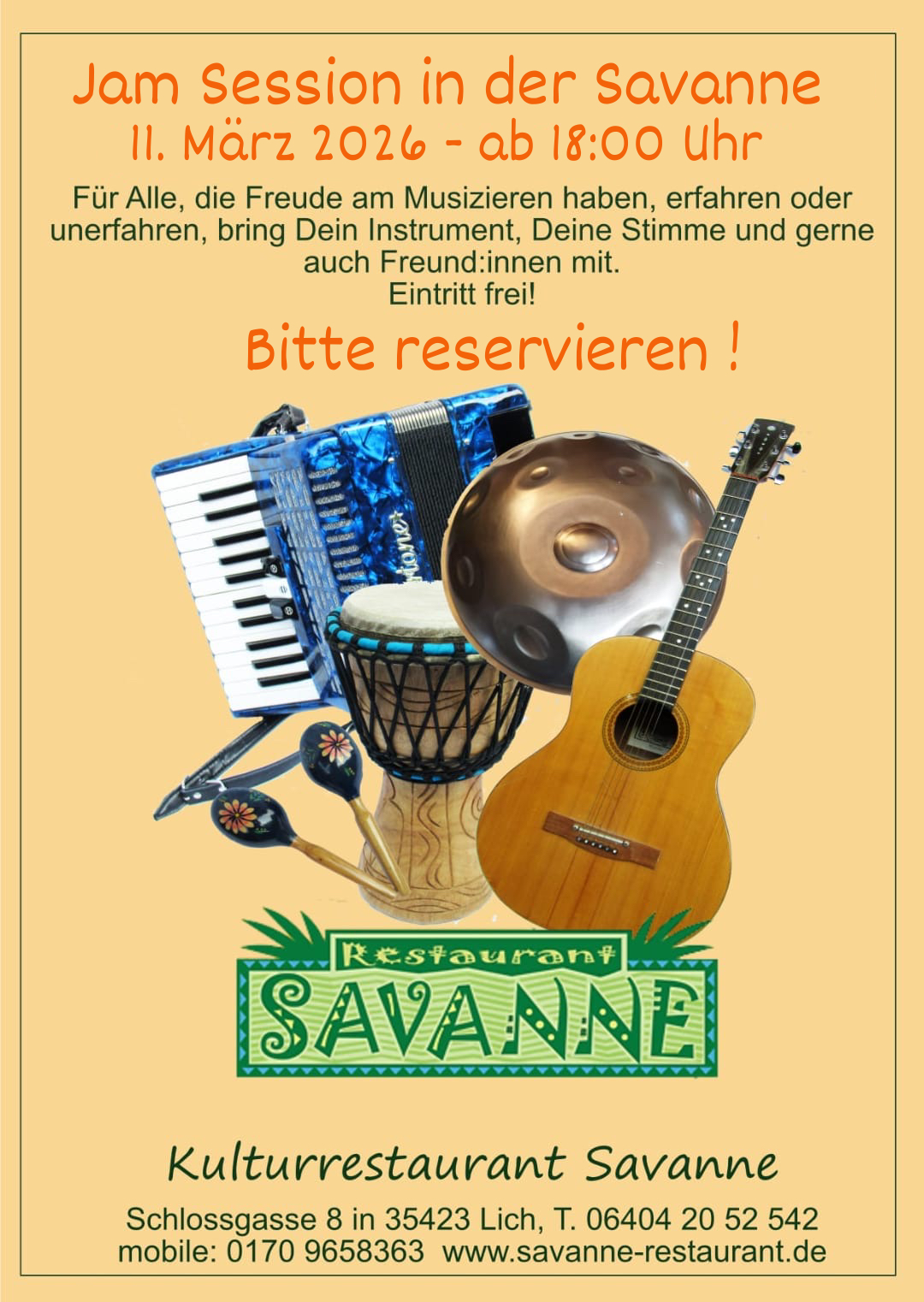 Telefon: 0160 92813675 (f?r Reservationen) www.savanne-restaurant.de